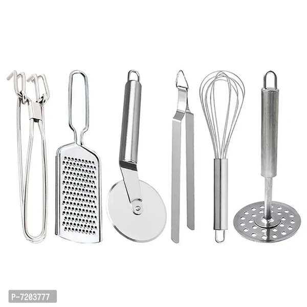 Oc9 Stainless Steel Pakkad Grater Pizza Cutter Roti Chimta Egg Whisk Potato Masher for Kitchen Tool Set 7203777