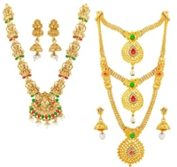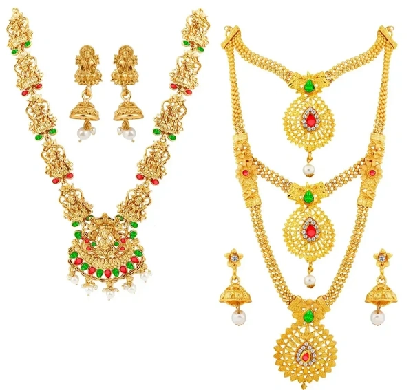 Gold Plated Long Set and Jewellery Set Combo For Women consist of 1 Multi Colour Diamond Studded long set with 1 Pair of Earring and 1 Designer long Set with 1 Pair of Earring and. These can be wear it on different occasion,that can be adore a Women or Girl.Necklace is secured with an adjustable chain or DrawString closure.A pair of matching Earrings,secured with post-and-back closure. Brings you a Designer Collection of Necklaces,Our Products are Made From Enviromennt Friendly Material With High Premium quality. This Is Goes on With Every Occasions look. This is a Perfect Gift For Your Love Ones or For yourself.This Necklace is Specially Designed for adding Charm,Grace and Elegance to you Personality. This is Non-allergic Product. Stay Stylist And Keep Shinning With jewellery.